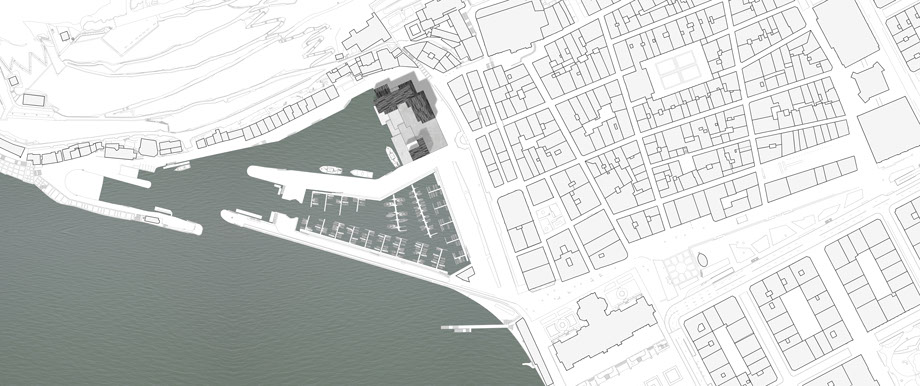 BARCODE. prof. Jesús Bazal In the port of San Sebastian has long been a building virtually obsolete. What was once a fish market of an important fishing port today is a non-use construction. The project consists of recovering that space to the harbor area, keeping the small fishing fleet and providing different uses to the marina. The wooden facade cladding keeps the appearance that has always had this place when it was surrounded by stacked fish boxes. It also generates a meeting point and recovers the link of the dock with the sea through a public space that descends to the water.